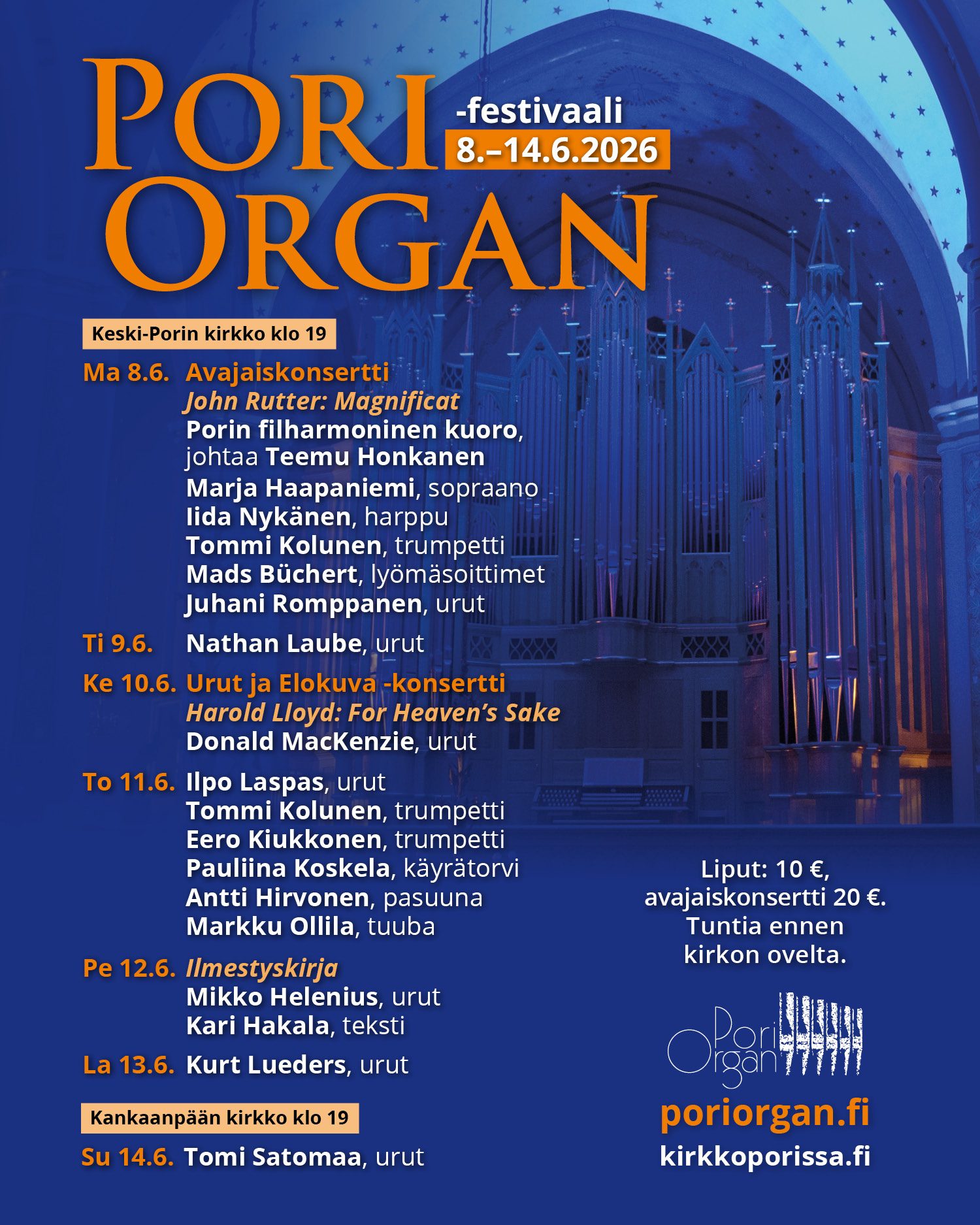 Liput: 10 euroa, avajaiskonsertti 20 euroa. Tuntia ennen kirkon ovelta.
